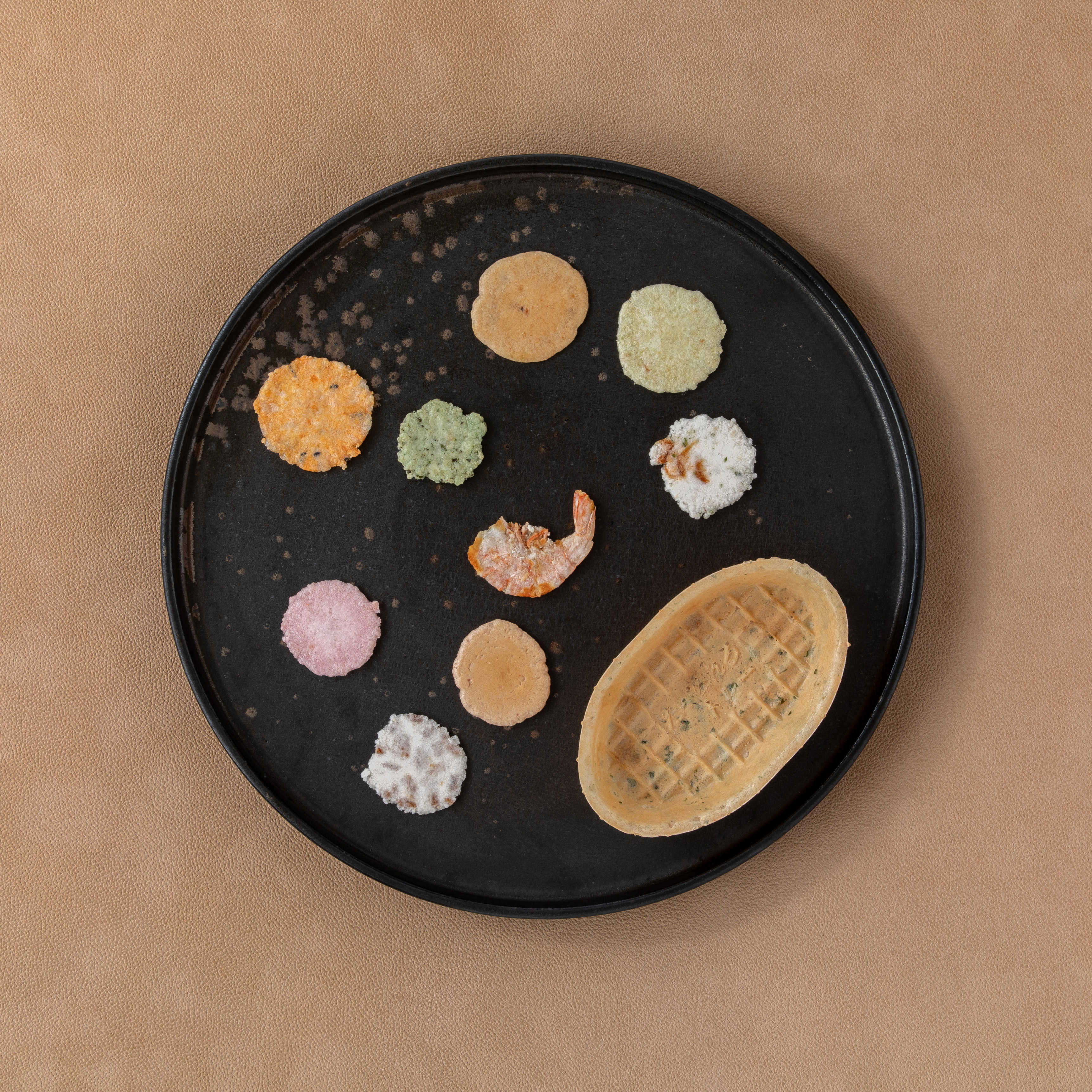 「食べられる海鮮せんべいトレー」を改良し、「甘えび小丸」と「こえび」が新しく仲間入り。