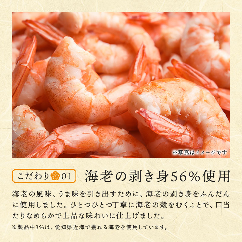 | 【内容量】 | 2枚×22袋(プリントされているおせんべいは1枚目のみ) 箱入り | 【原材料名】 | 海老、澱粉、和三盆糖、植物油脂、乾燥オキアミ、食塩、米粉(米(国産))、酵母エキス/調味料(アミノ酸)、(一部にえび・大豆を含む) |