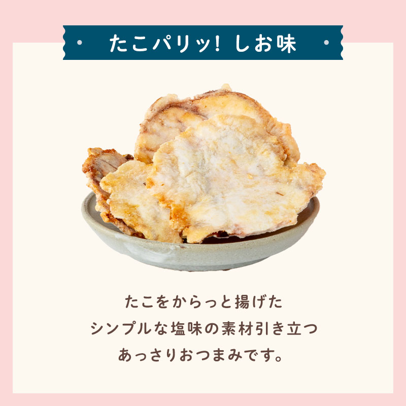 たこをからっと揚げたシンプルな塩味の素材引き立つあっさりおつまみです。