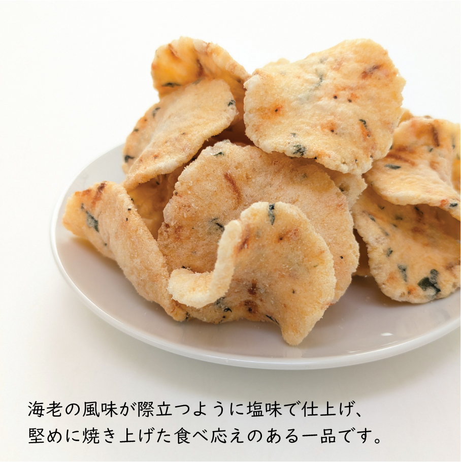 海老の風味が際立つように塩味で仕上げ、堅めに焼き上げた食べ応えのある一品です。